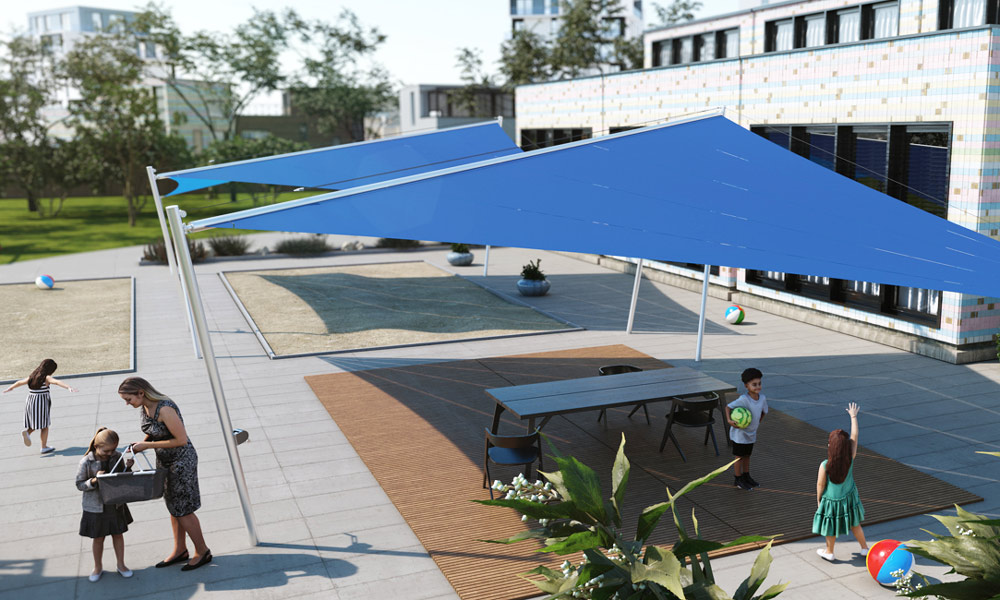 RF-Sonnensegel: Manuelle Handhabung auf Elektro-Niveau